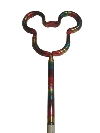 molded outline ofย Mickey’s head and matching rainbow design.